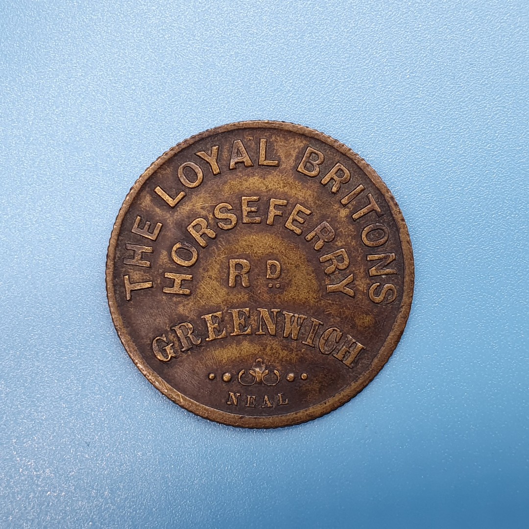 Obv. THE LOYAL BRITONS - HORSEFERRY RD - GREENWICH - NEAL