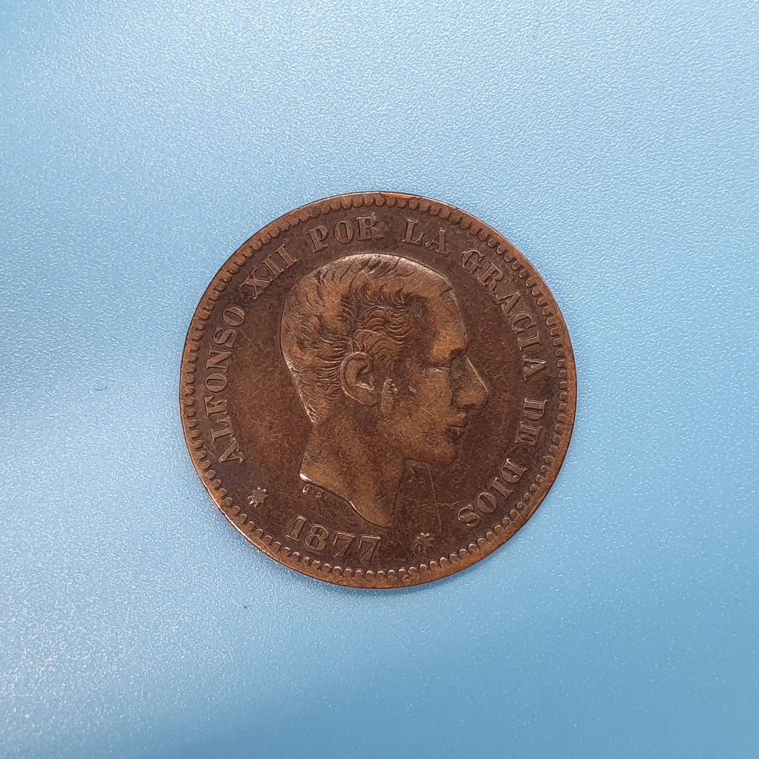 Obv. ALFONSO XII POR LA GRACIA DE DIOS - G.S. - * 1877 *