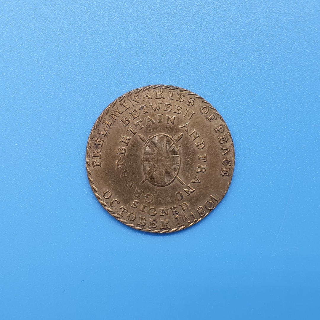 Obv. PRELIMINARIES OF PEACE BETWEEN GREAT BRITAIN AND FRANCE · SIGNED OCTOBER 1 1801